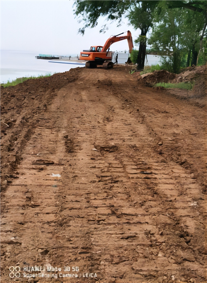 岸边抛石施工;1000米长,5米宽沥青混凝土环湖路施工;毛石护坡施工;4米园路施工等多个施工项目。
